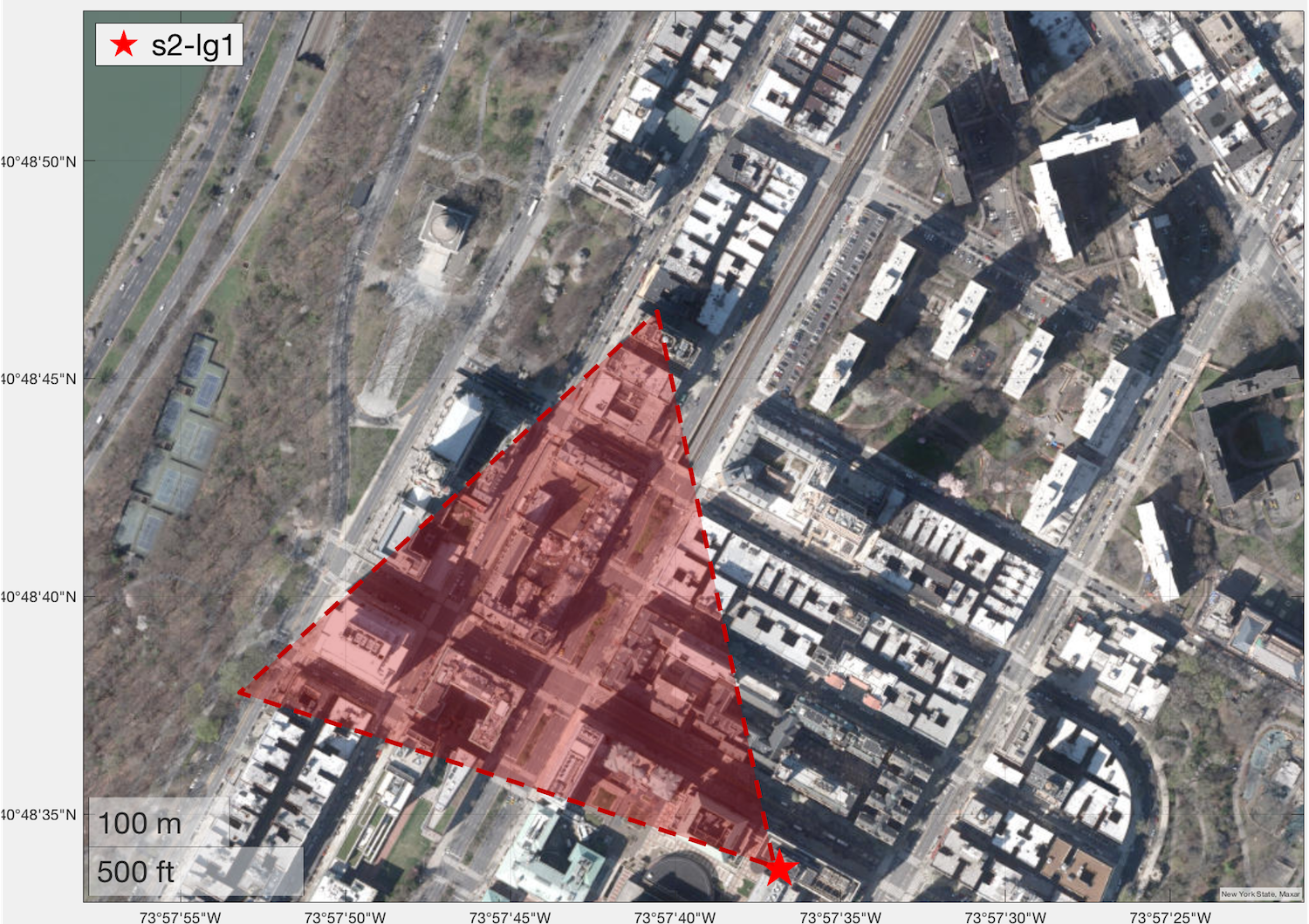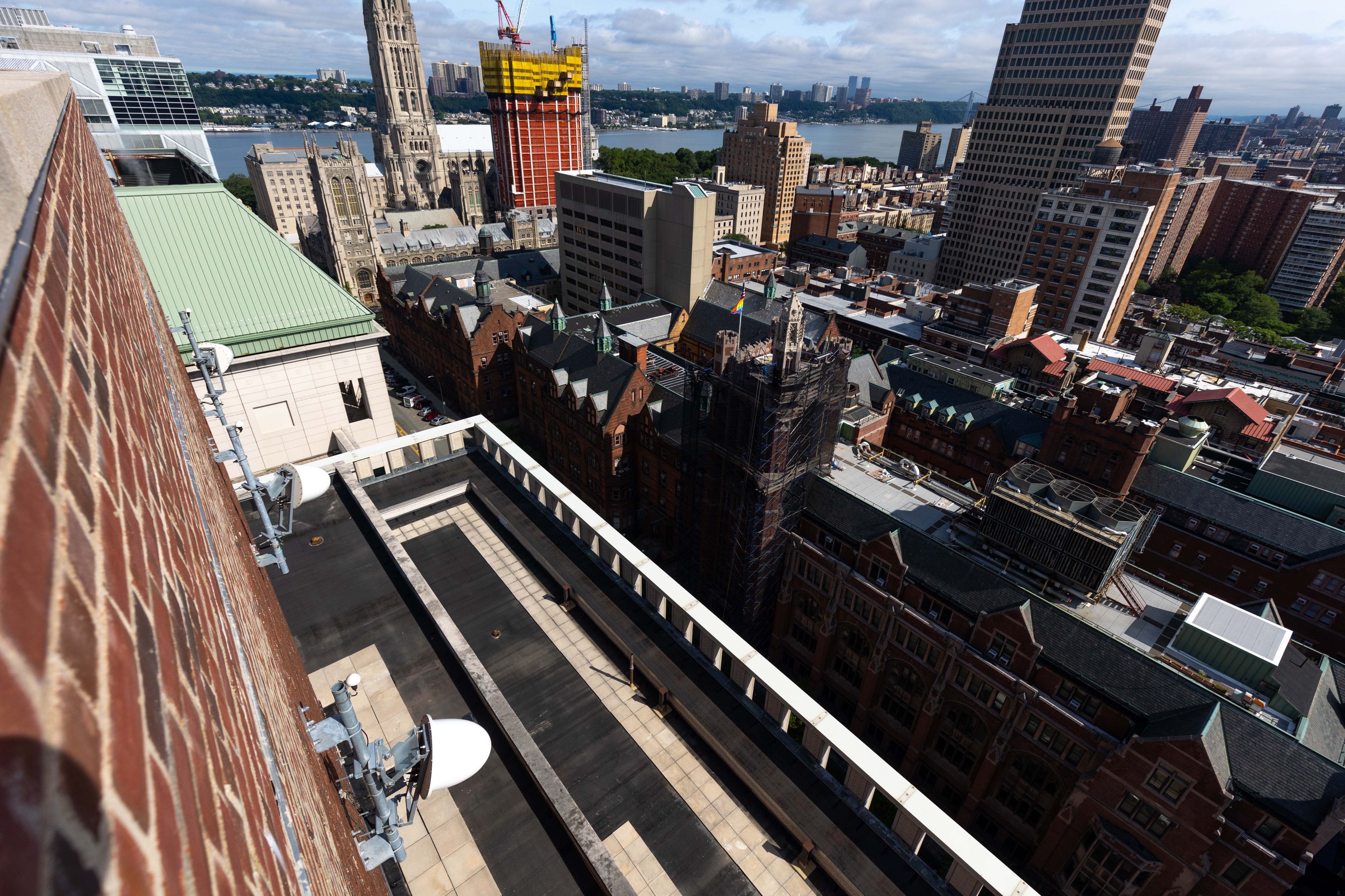 Node s2-lg1 is the second sector of Large Node 1, located on the 18th floor roof of the Mudd Building at Columbia University, roughly 68m above the campus level and 78m above the street level. Sector 2's antenna is pointed to the northwest overlooking the intersection of Broadway and 120th St, and Manhattanville, West Harlem.