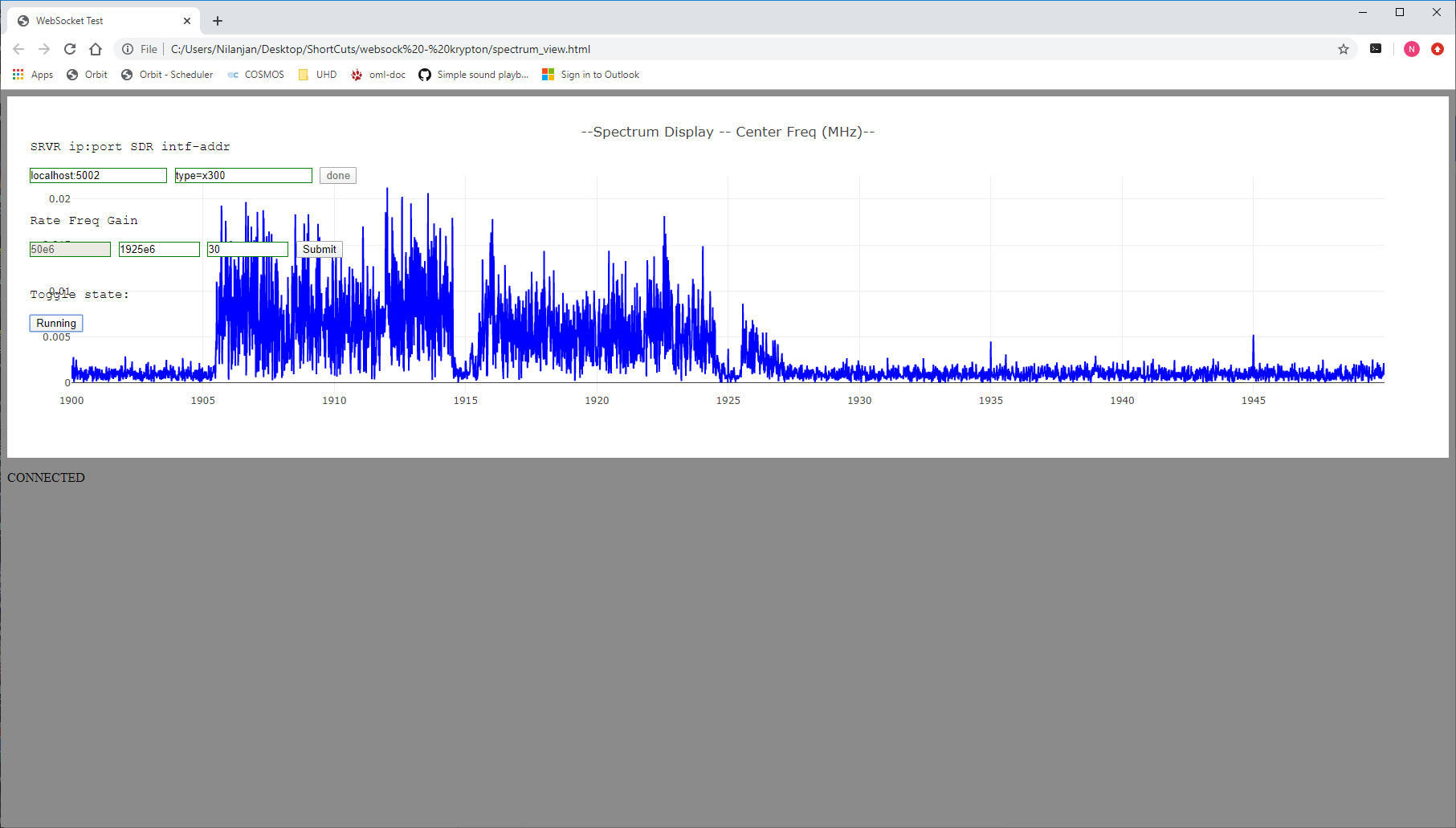 • Download the spectrum visualizer web client to your desktop. It is all in another zip file - spectrum_view.zip. Unzip this folder and open spectrum_view.html in a Chrome browser.
