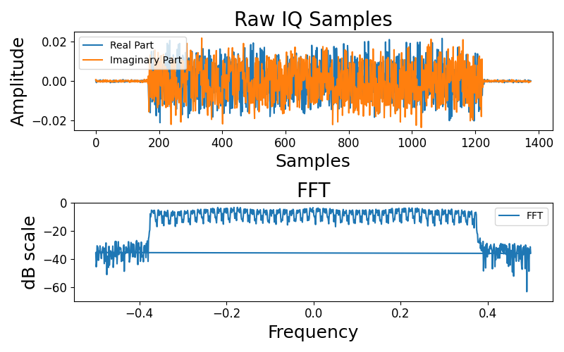 • cubic_timeD.py: This visualization tool helps to visualize the raw IQ samples captured by Agora-UHD and the corresponding FFT.